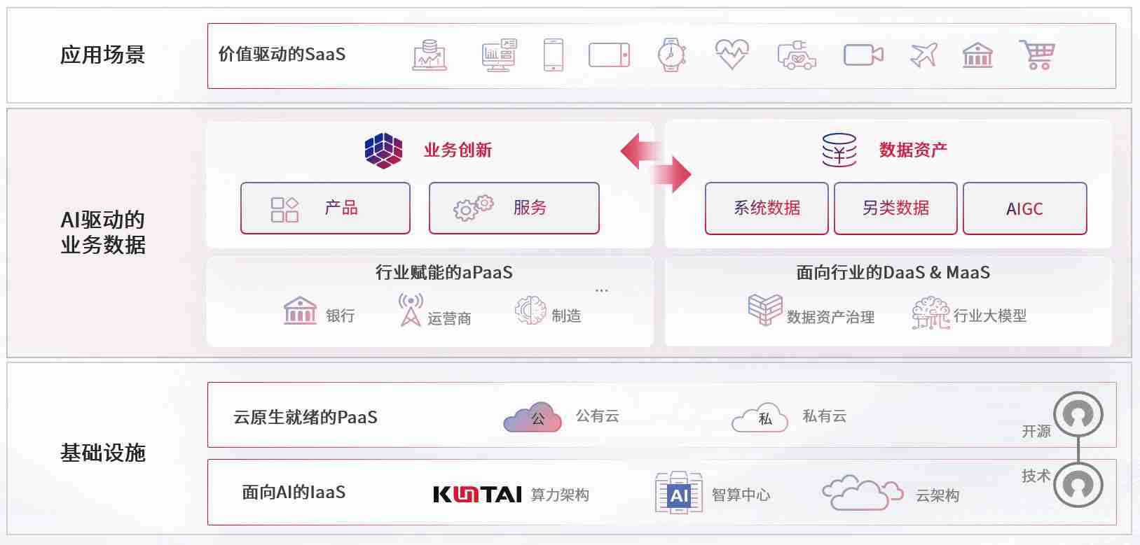 数字时代,,围绕企业数字化转型的关键要素,,,,365钱包数码开创性的提出数云融合战略和技术体系框架,,,,着力在云原生、、数字原生、、AI原生和信创产业上架构产品和服务能力,,为处在不同数字化转型阶段的快消零售、、汽车、、、金融、、医疗、、、、政企、、教育、、、、运营商等行业客户提供泛在的敏捷IT能力和融合的数据驱动能力,,构建跨界融合创新的数字业务场景和新业务模式,,助力企业级客户建立面向未来的核心能力和竞争优势,,,全面推动社会的数字化、、、智能化转型升级。。。。